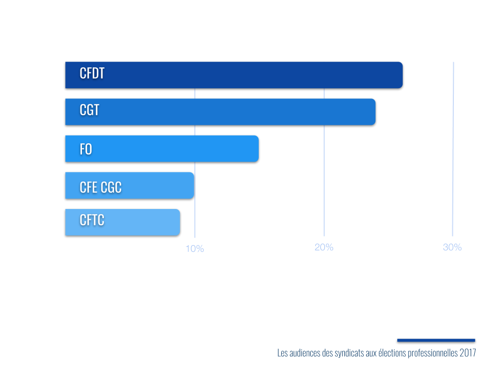 - La Confédération française démocratique du travail (CFDT): 26,37% des voix
