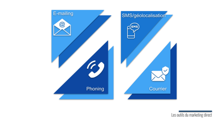 Les outils utilisés par le marketing relationnel sont nombreux, et relèvent du marketing direct et de la communication hors média et media pour la partie web (media social).