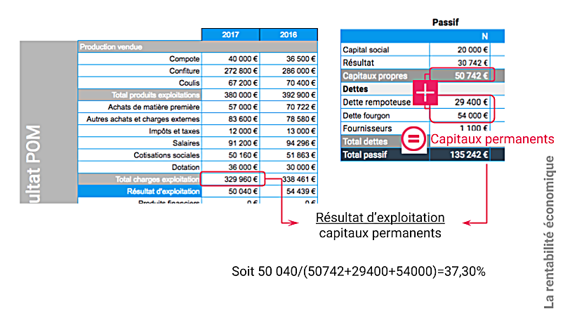 La rentabilité économique va mesurer la pertinence des investissements. Une entreprise qui a investi 400 000 euros dans son outil de production et dont le résultat d’exploitation est de 40 000 aura une rentabilité économique de 10%.