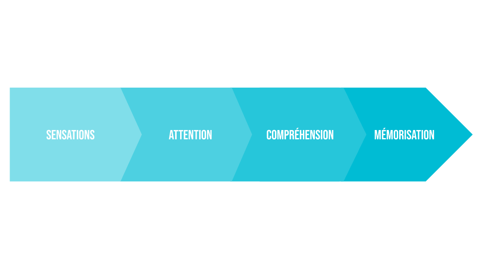 3. la compréhension : l’information est classée et interprétée par le cerveau ;