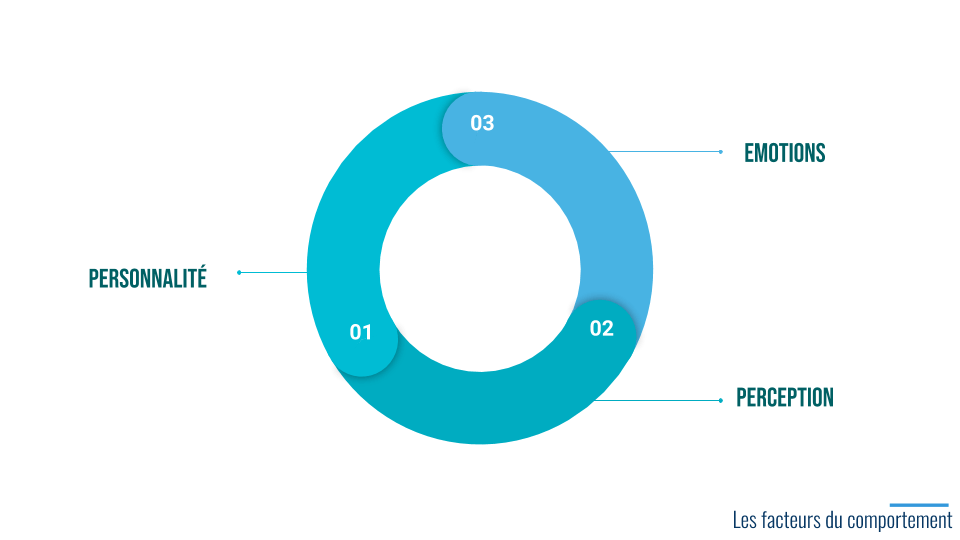 La personnalité est donc une manière singulière d’agir. Ce comportement est influencé par une combinaison d’émotions, déterminées par la perception de l’environnement, mais aussi par une prédisposition à agir :l’attitude.