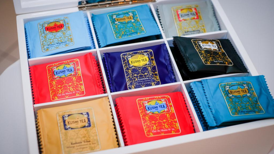 Le packaging a aussi pour fonction de positionner le produit en véhiculant une image du produit ou de la marque et en le situant par rapport aux concurrents. L’emballage ou le positionnement doit permettre une identification facile du type de produit qu’il contient : le design, la couleur, le graphisme ou les matières utilisées aident à positionner le produit, comme ci-dessous avec Kusmi Tea, qui se différencie de Lipton.