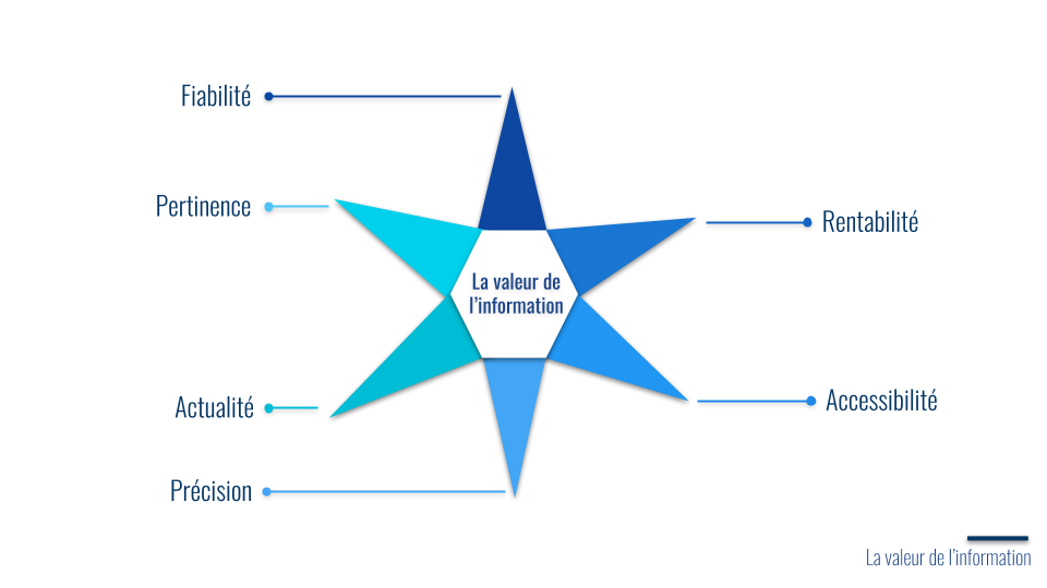 - la précision : la meilleure information est celle qui réduit le plus l’incertitude de ceux qui l’utilisent dans l’organisation ;