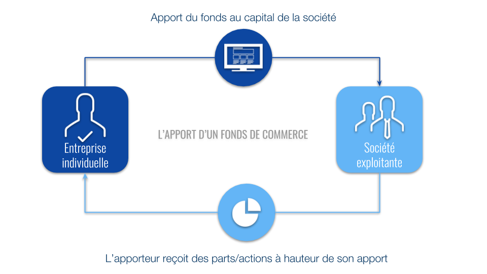 - évaluation du fonds de commerce. L’entrepreneur réalise un apport en nature en contrepartie de parts sociales ou d’actions ;