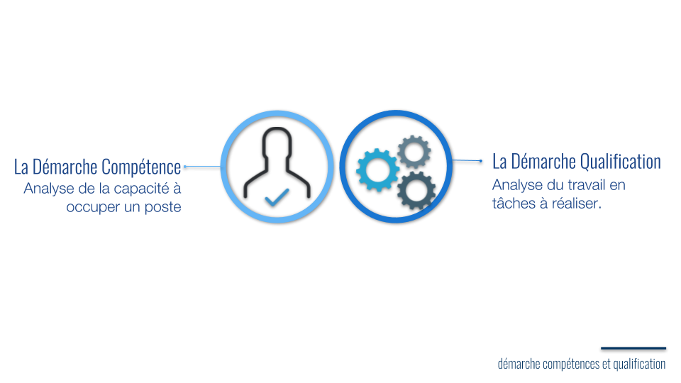 La démarche qualification est centrée sur le poste de travail alors que la démarche compétence est centrée sur l’individu. Cette dernière s’impose aujourd’hui en matière de ressources humaines car elle permet :
