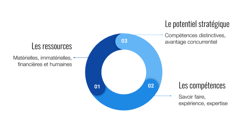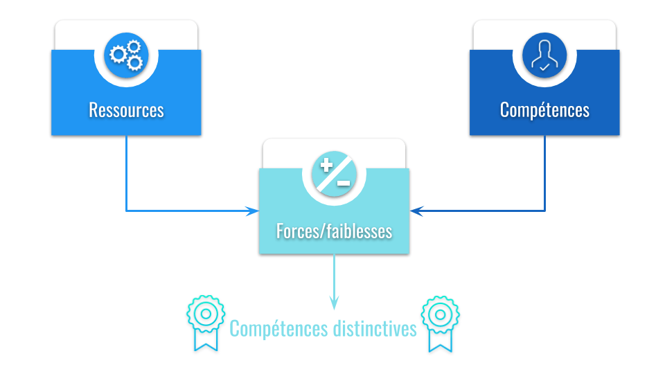 Les compétences et ressources sont ainsi évaluées en termes de force et de faiblesses par rapport à ses concurrents et son domaine d’activité.