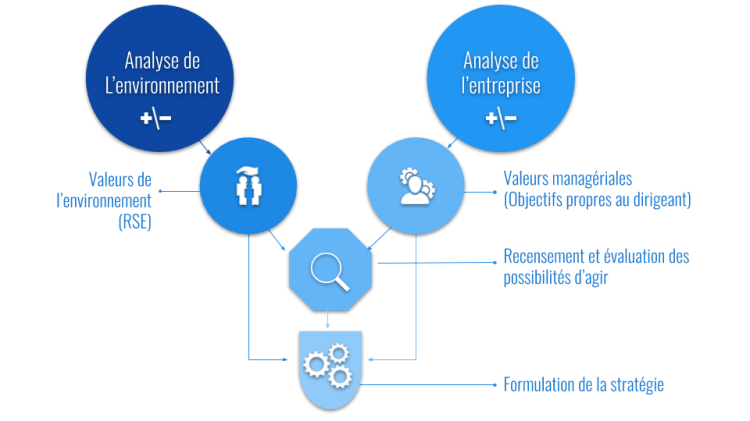 - Éclaircissement des valeurs de l’environnement (responsabilité sociale de l’entreprise) et des valeurs managériales (dirigeants)