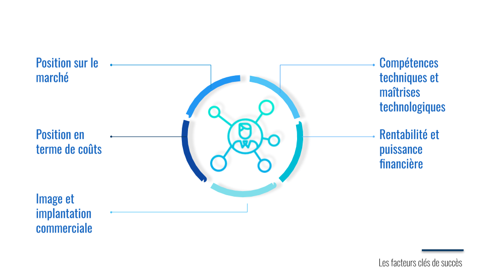 L’analyse de l’environnement doit permettre d’identifier également les facteurs clés de succès, à savoir l’ensemble des éléments que l’organisation se doit de maîtriser pour maintenir ou développer son activité dans un champs concurrentiel. Ses FCS sont des facteurs externes à l’organisation, qu’elle doit donc s’approprier.