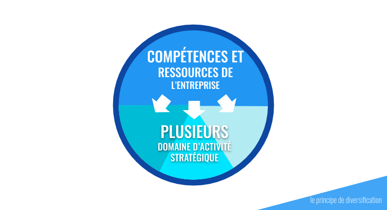 La stratégie de diversification consiste pour une entreprise à s’engager dans de nouveaux métiers, de nouveaux domaines d’activité stratégique (DAS). la diversification correspond aux mouvements stratégiques qui se concrétisent par un changement de domaine d’activité, c’est-à-dire par la prise en compte d’un nouvel ensemble de facteurs clés de succès, mais aussi l’acquisition ou la maîtrise de nouvelles compétences ou savoir-faire.