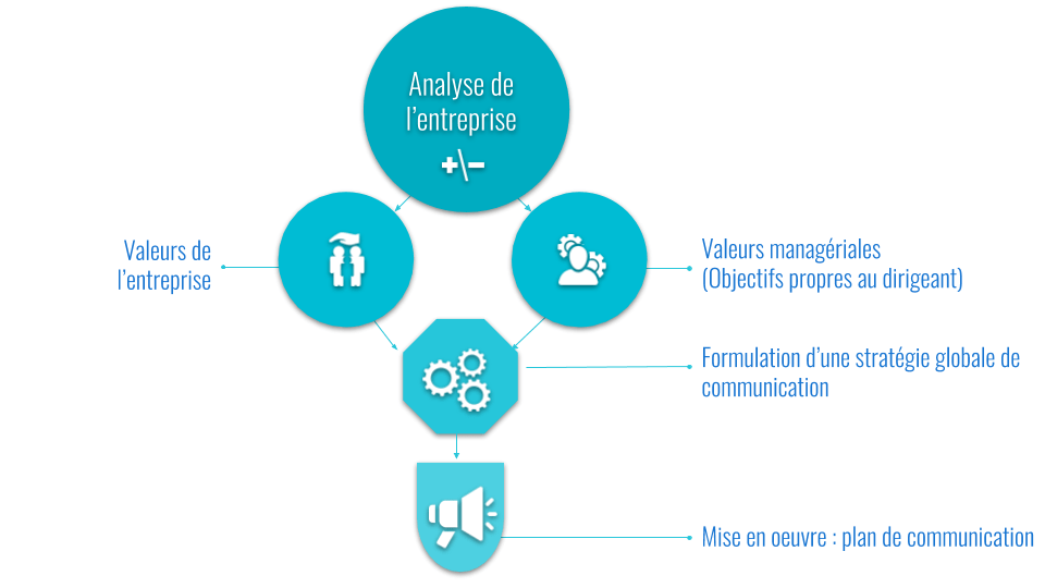 Communiquer répond aux mêmes problématiques qu’une stratégie globale ou de domaine. A partir d’un diagnostic, l’entreprise définit ses objectifs, alloue des moyens pour les atteindre et contrôle les résultats obtenus.