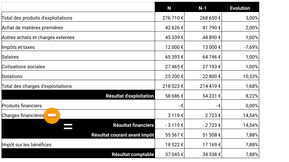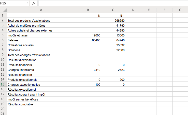 Tout d’abord, complétez le compte de résultat. Faîtes varier les valeurs en N en reprenant les données de l’énoncé.