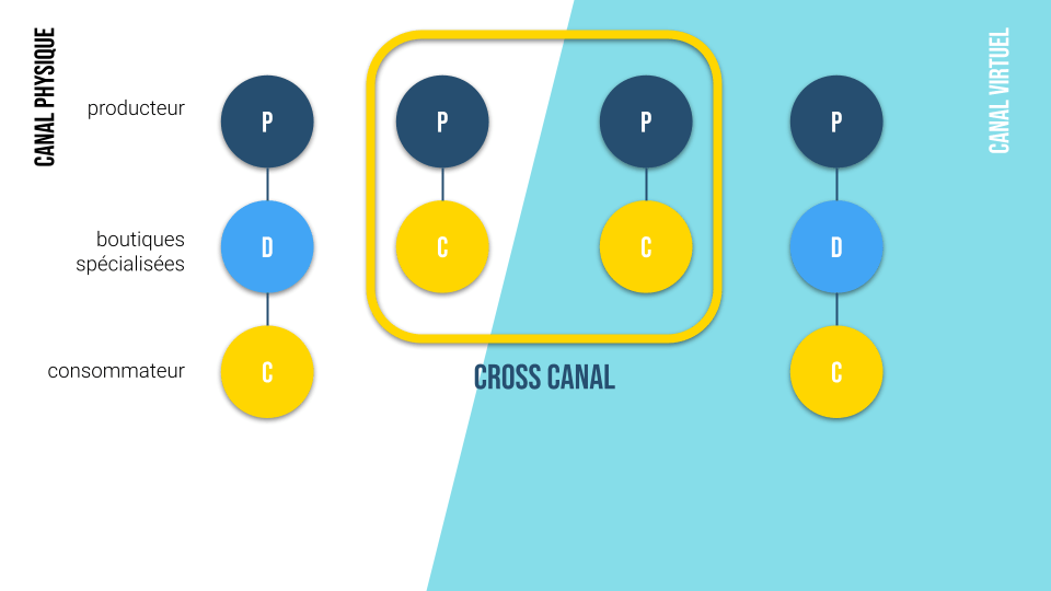 Ce mode de distribution s’applique dans le cas où le circuit de distribution intègre des canaux de distribution physique et virtuels directs.