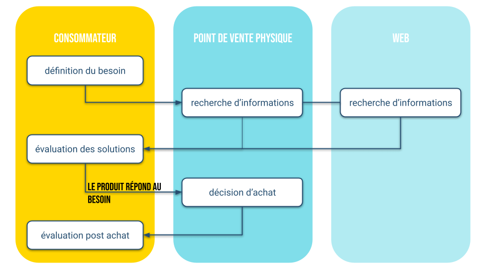 - La décision d’achat : le consommateur achète le produit qui répond aux critères qu’il a préalablement définis.