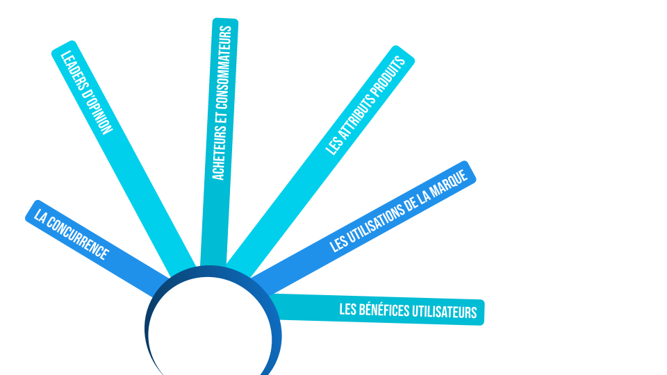 Les attributs du produit, il s’agit ici des caractéristiques du produit : caractéristiques techniques, composition, taille, poids, ergonomie, design… mais aussi le prix, dont le niveau est associé à un niveau de gamme (prix élevé/haut de gamme…)