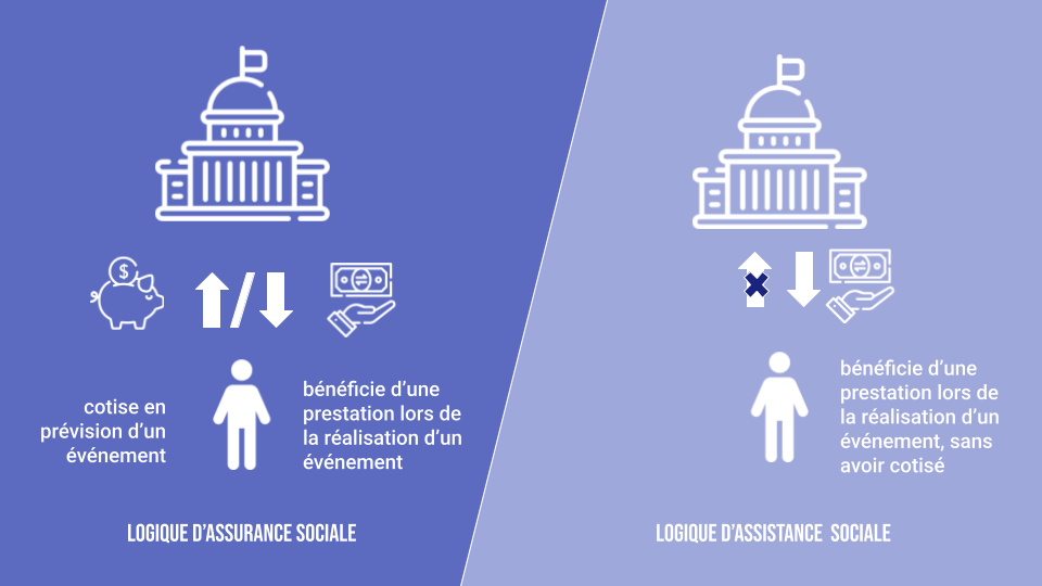 On distingue ainsi deux logiques : l’assurance sociale et l’assistance sociale.