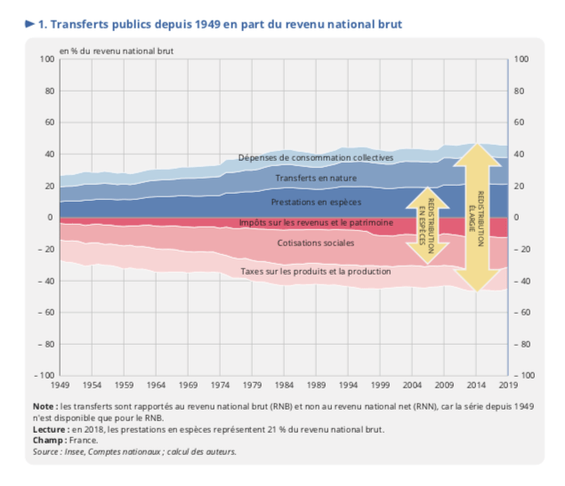 La redistribution est souvent considérée comme une redistribution monétaire, mais elle est également extra-monétaire par la mise à disposition de services publics.