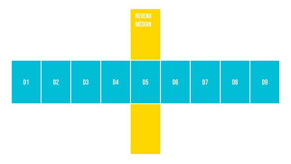 De même, pour analyser les inégalités de revenus, on découpe la population en dix catégories appelées déciles. Le décile D1 correspond au décile des 10% les moins favorisés, D9 au décile des plus hauts revenus. Les données de D10 ne sont pas rendues publiques.