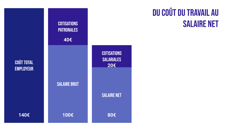 La rémunération du travail sous forme de salaire est distincte de la notion du coût du travail. En effet à ce salaire s’ajoutent les cotisations sociales. Le coût du travail est ainsi constitué de la rémunération brute et des cotisations patronales, auxquelles on peut également ajouter un ensemble de taxes (formation professionnelle..). Ces cotisations sociales alimentent le financement de la protection sociale française.