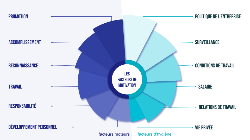 Dans cette approche, deux grandes familles de facteurs de motivation sont distingués. Le premier est externe à l’individu (l’hygiène de vie). Il s’agit ici de la qualité de l’environnement, et plus particulièrement la satisfaction des besoins en l’absence de laquelle on est mal à l’aise ou frustré. Leur présence apaise sans vraiment stimuler. Garantir de bonnes conditions de travail n’accroît pas mécaniquement la motivation, mais permet de limiter la démotivation.