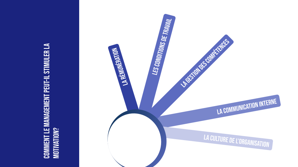 La motivation désigne les forces qui agissent sur une personne ou à l’intérieur d’elle pour la pousser à se conduire d’une manière spécifique,orientée vers un objectif. Les pulsions, enjeux ou mobiles auxquels obéissent les salariés dans leur travail affectent leur productivité. Stimuler par le management la motivation des salariés constitue ainsi un élément indispensable à la performance de l’organisation, par une productivité accrue, une plus grande réactivité et une coordination des membres renforcée. Au delà d’être un facteur immatériel de création de valeur, c’est tout aussi un outil de réduction de coût par une réduction de la rotation du personnel et un moindre absentéisme.