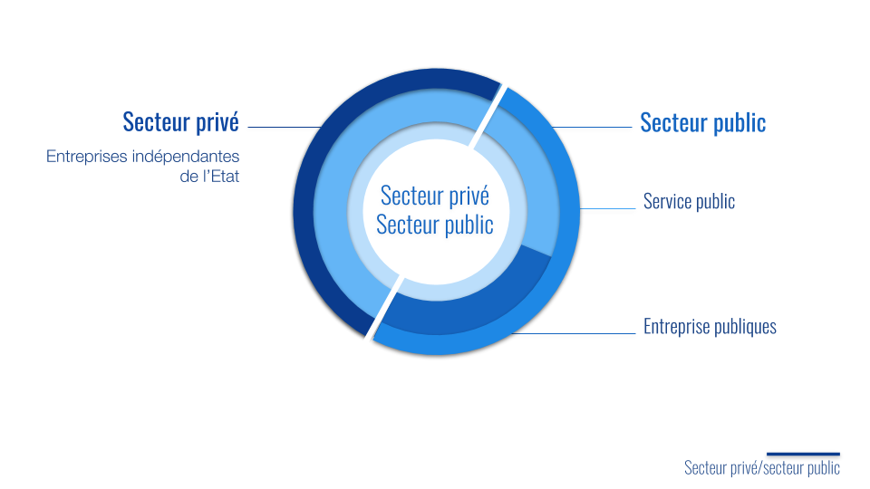 Le secteur public rassemble les activités économiques et sociales prises en charge par les administrations, les entreprises publiques et les organismes public administratif (caisses nationales).