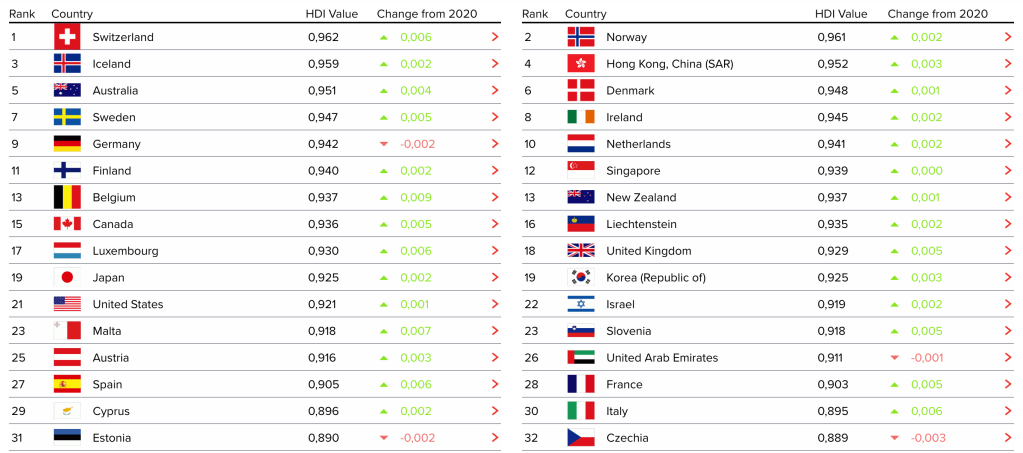L’indice de développement humain (IDH) correspond à un indice composé calculé chaque année par le PNUD afin d’évaluer le niveau de développement des pays en se fondant non pas sur des données strictement économiques, mais sur la qualité de vie de leurs ressortissants.