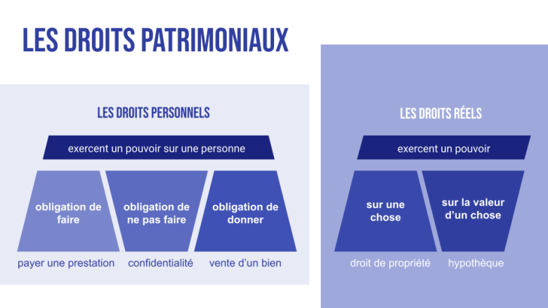 On retrouve ainsi les droits personnels et les droits réels.