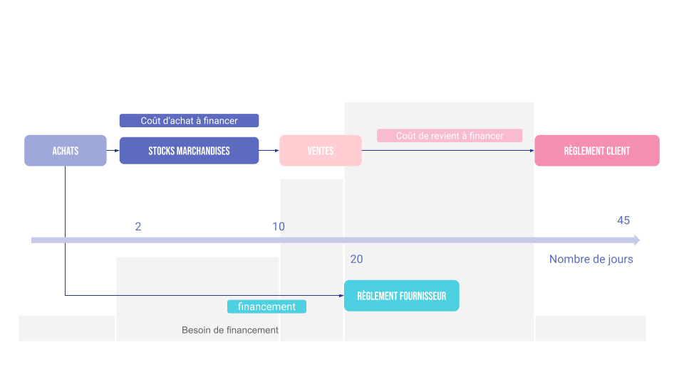 La conduite de la production de bien ou de services nécessite de mobiliser des fonds, que ce soit pour du stock de matières premières ou de produits finis, les facilités de paiement accordées au clients (paiement à 30 jours…).