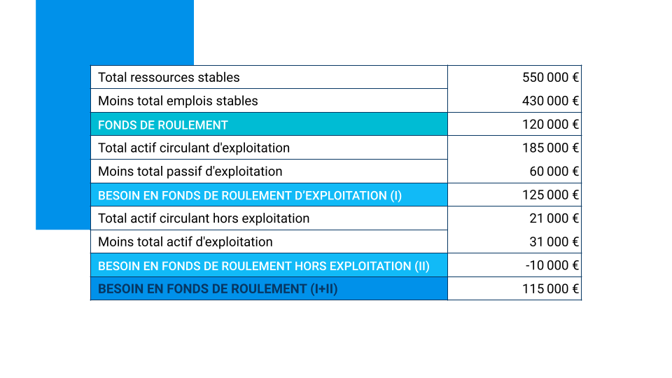 Le besoin en fonds de roulement correspond donc au besoin réel de financement du cycle court de l’entreprise par l’entreprise.