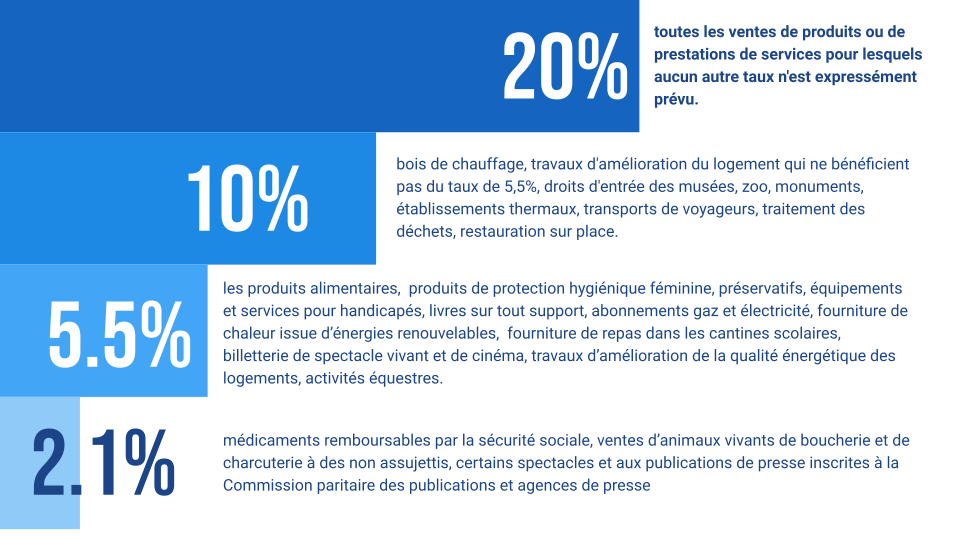 Il s’applique à tous les produits ou services pour lesquels aucun autre taux n’est expressément prévu.