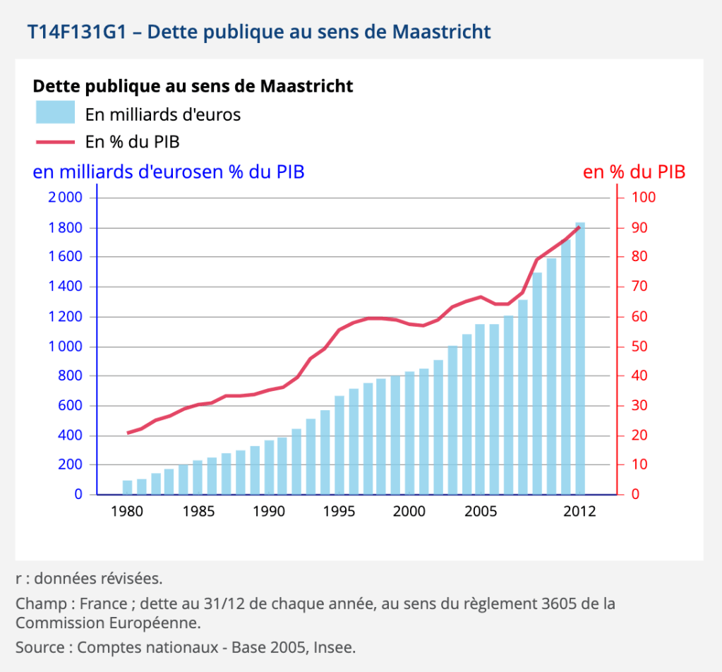 La période de forte croissance du PIB observée pendant les trentes glorieuses permettent l’équilibre des comptes publics, qui depuis la moitié des années 1970 se dégradent fortement.