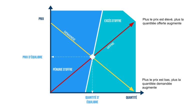 Dans une analyse néoclassique du marché, à savoir une une concurrence pure et parfaite, lorsque l’offre est supérieure à la demande, les offreurs (les travailleurs) se font concurrence pour vendre leur force de travail en baissant le prix qu’ils proposent ce qui permet d’augmenter la demande de ces produits et de réduire l’offre. Le prix baisse jusqu’à ce que les quantités offertes et les quantités s’équilibrent : le marché fixe ainsi le prix d’équilibre qui établit les quantités échangées.