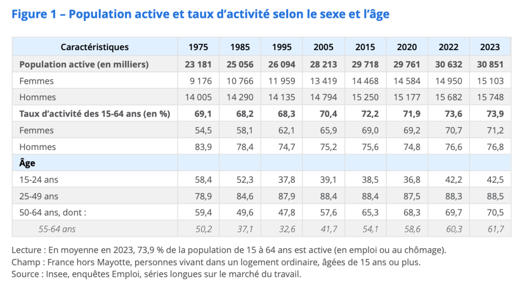 La population active peut varier pour des raisons démographiques (hausse de la population et/ou d’une classe d’âge), mais aussi en fonction du taux d’activité.