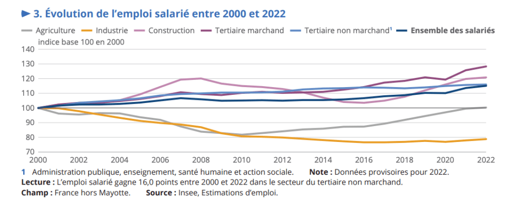 Le secteur privé marchand est le principal moteur de la demande d’emplois.