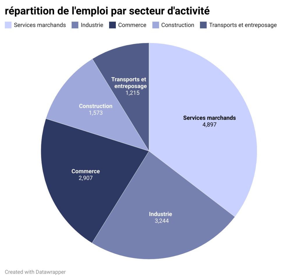 Le tertiaire est là aussi dominant par rapport aux autres secteurs d’activités.