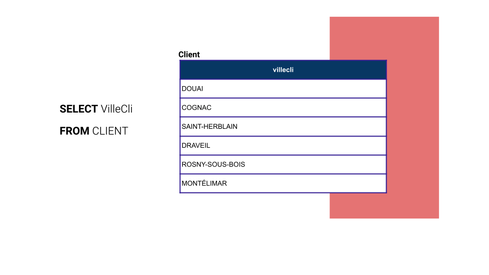 si l’on souhaite faire apparaître uniquement toutes les villes des clients