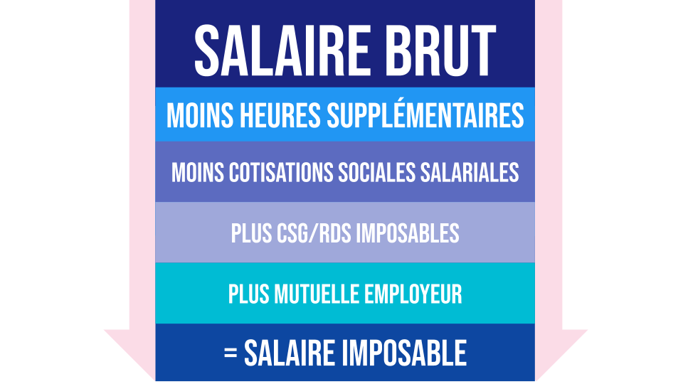 Le salaire imposable est différent du salaire net à payer. En effet, il réintègre certains éléments de CSG/RDS qui sont imposables même s’ils sont déduits du salaire brut, mais déduit les heures supplémentaires qui bien que socialisées ne sont pas imposables dans la limite de 7 500€ par an.